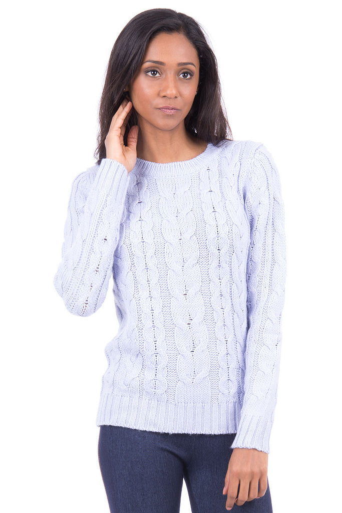 Cable Design Knitted Jumper. This fabulous jumper will keep you extra warm this season! Simply team up with a pair of jeans\, lovely pair of shoes\, and a over-the-shoulder bag for that ultimate look! Key features include cable design\, long sleeves and a round neck. Material:90% Acrylic10% Wool Approx measurements...
