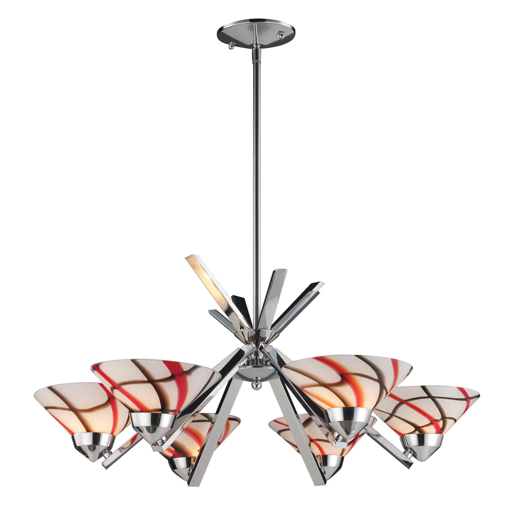 6 Light Chandelier In Polished Chrome And Creme White Glass
