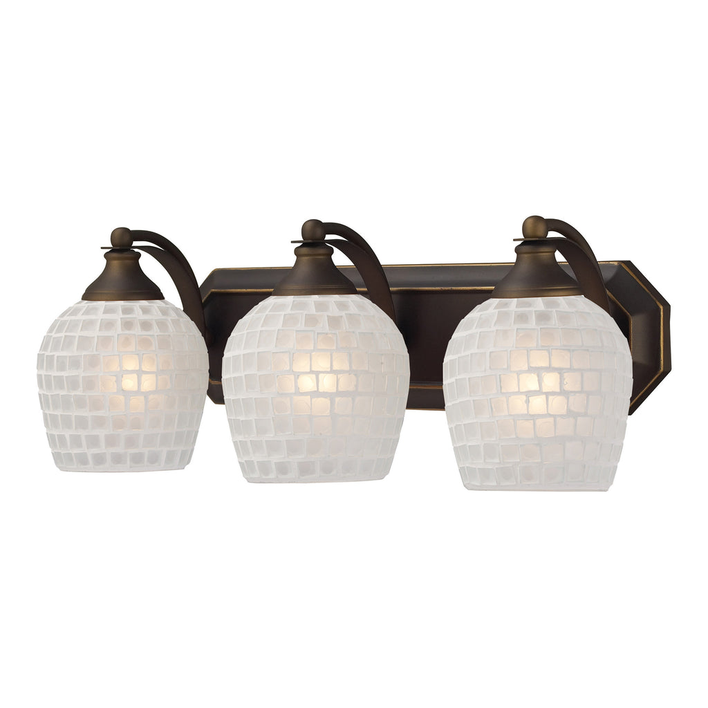 3 Light Vanity In Aged Bronze And White Mosaic Glass