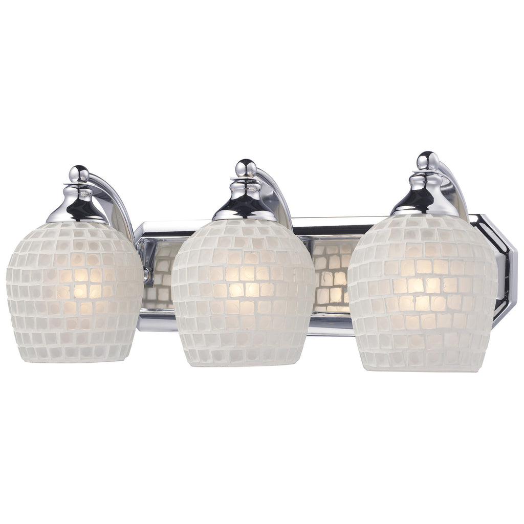 3 Light Vanity In Polished Chrome And White Mosaic Glass