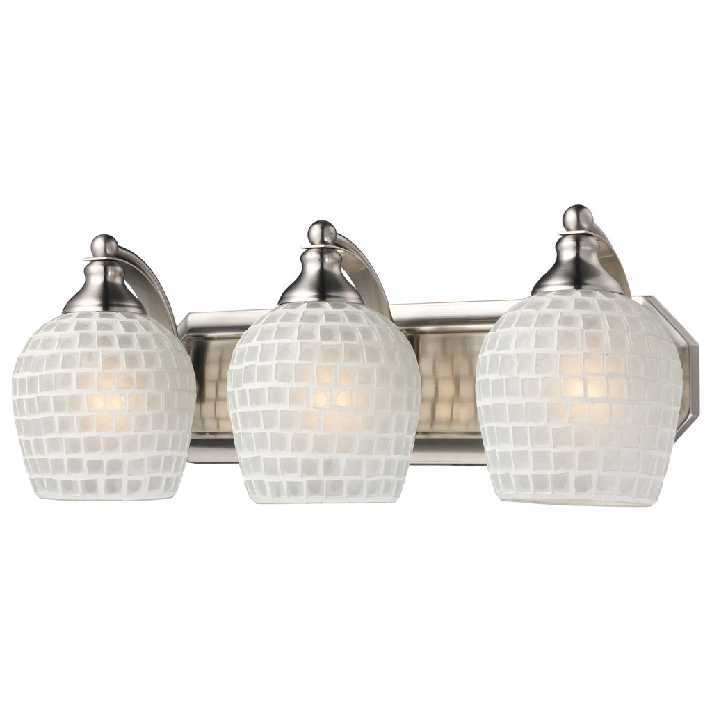 3 Light Vanity In Satin Nickel And White Mosaic Glass