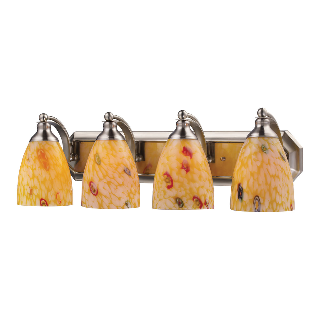 4 Light Vanity In Satin Nickel And Yellow Blaze Glass