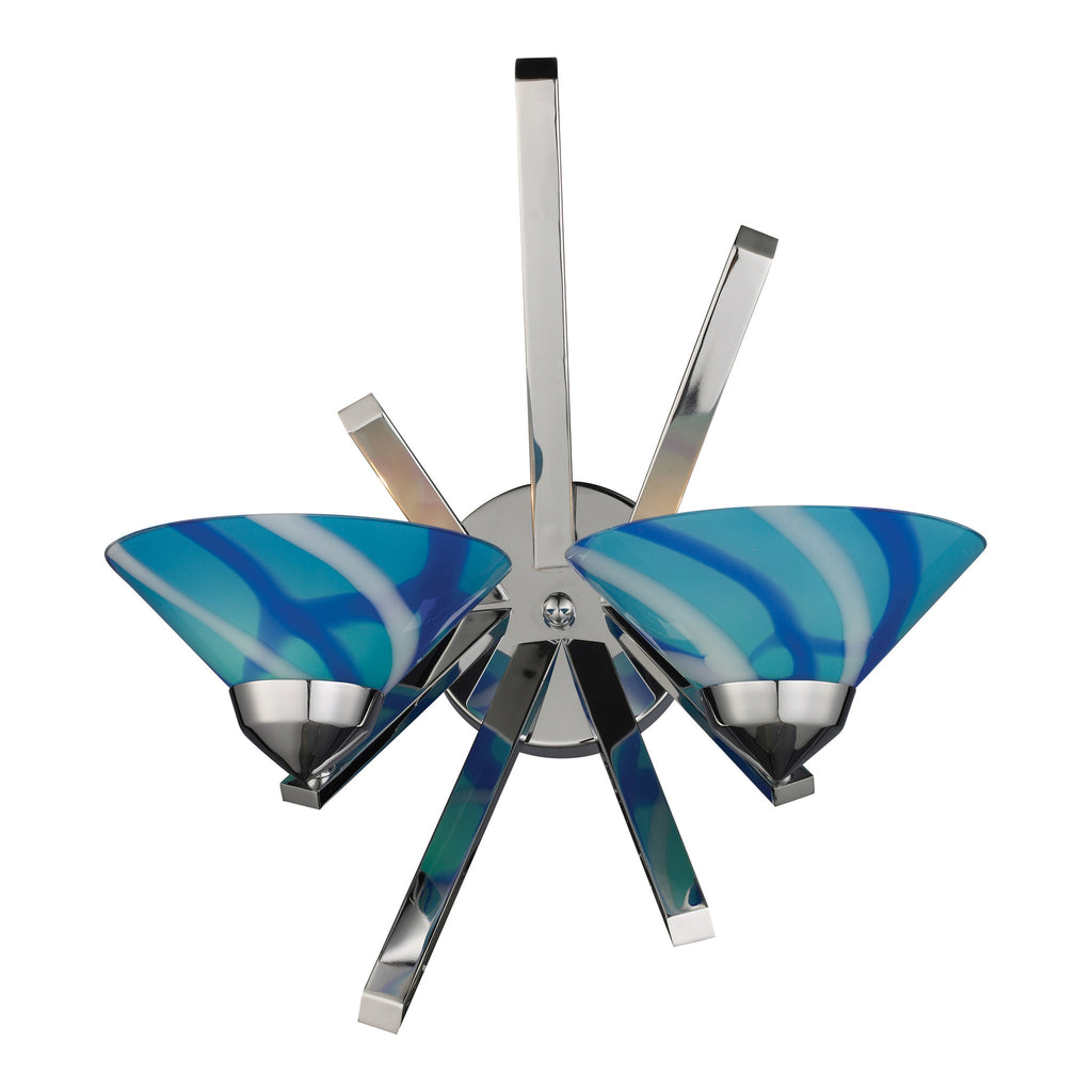 2 Light Sconce In Polished Chrome And Carribean Glass
