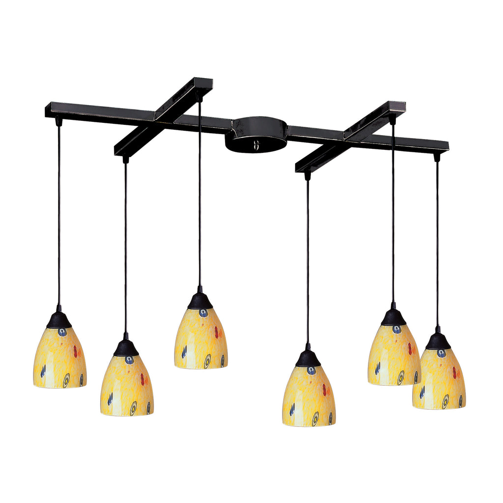 6 Light Pendant In Dark Rust And Yellow Blaze Glass