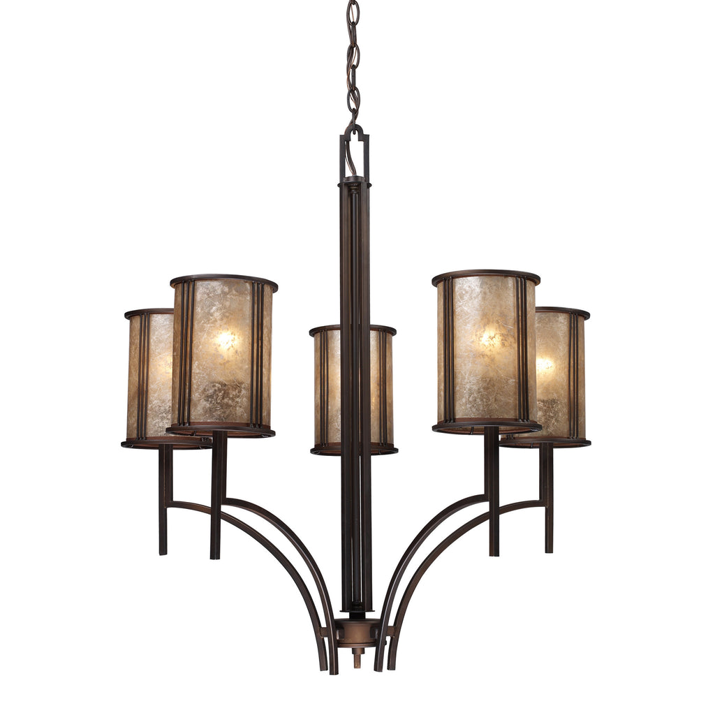 Barringer 5-Light Chandelier In Aged Bronze And Tan Mica Shades