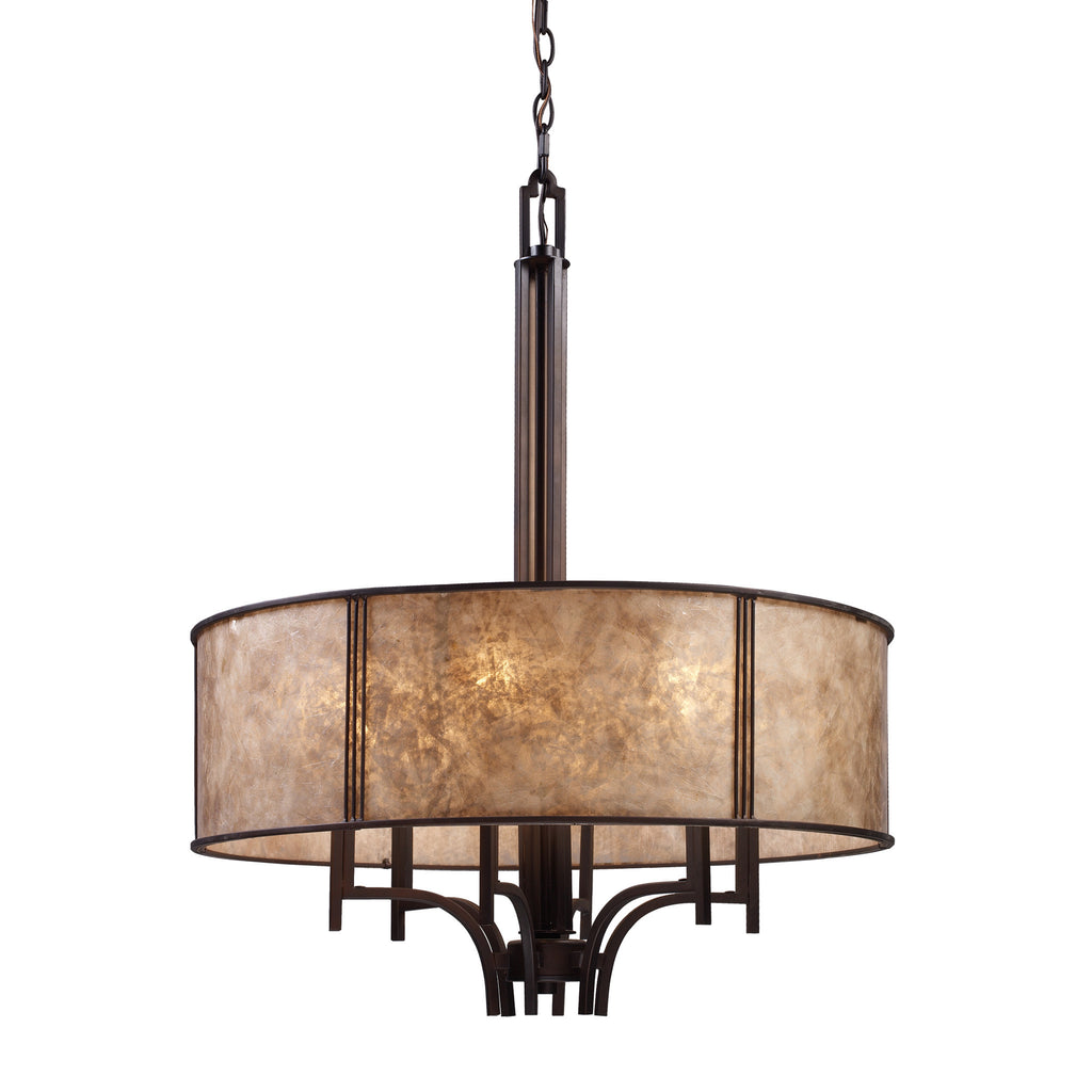 Barringer 6-Light Pendelier In Aged Bronze And Tan Mica Shade