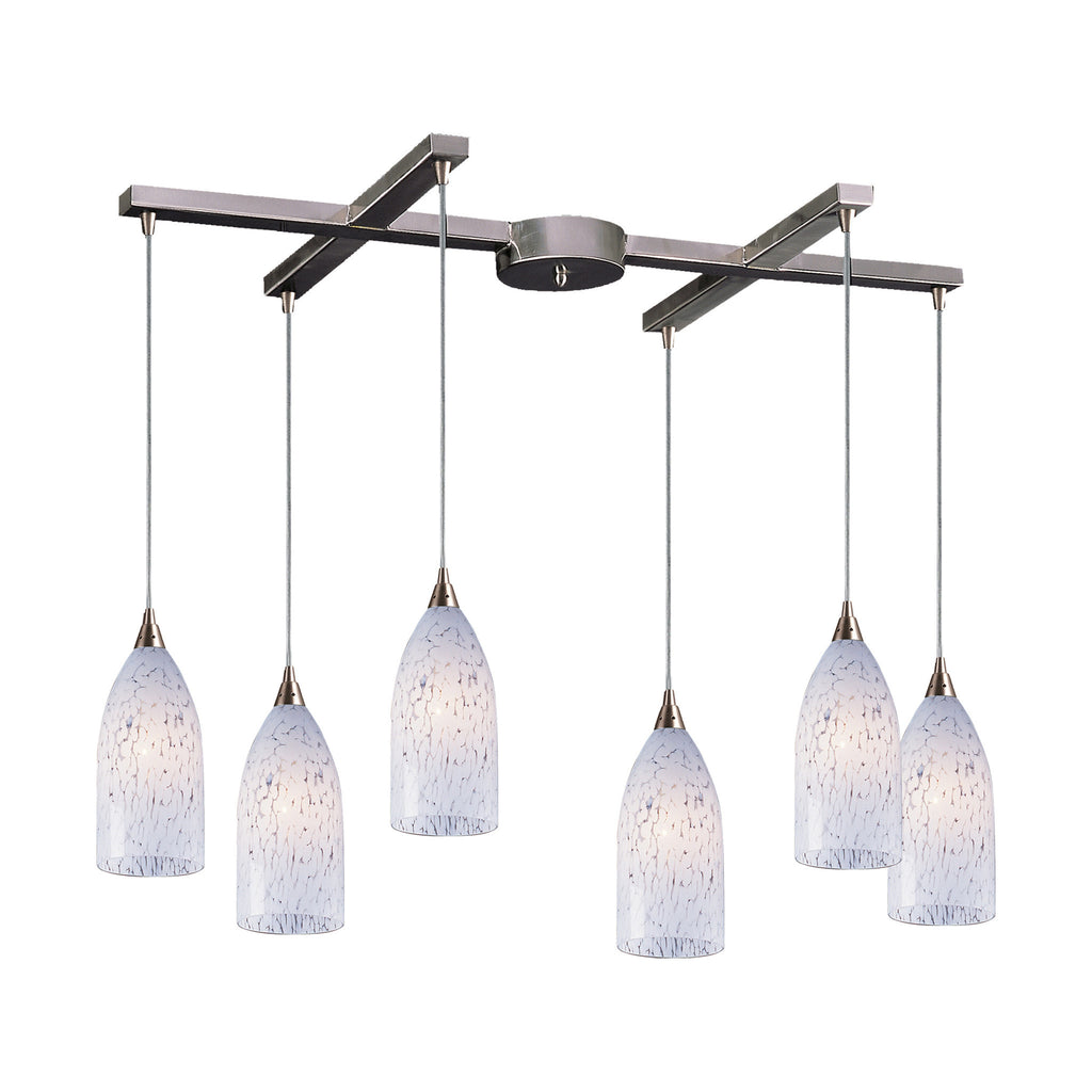6 Light Pendant In Satin Nickel And Snow White Glass