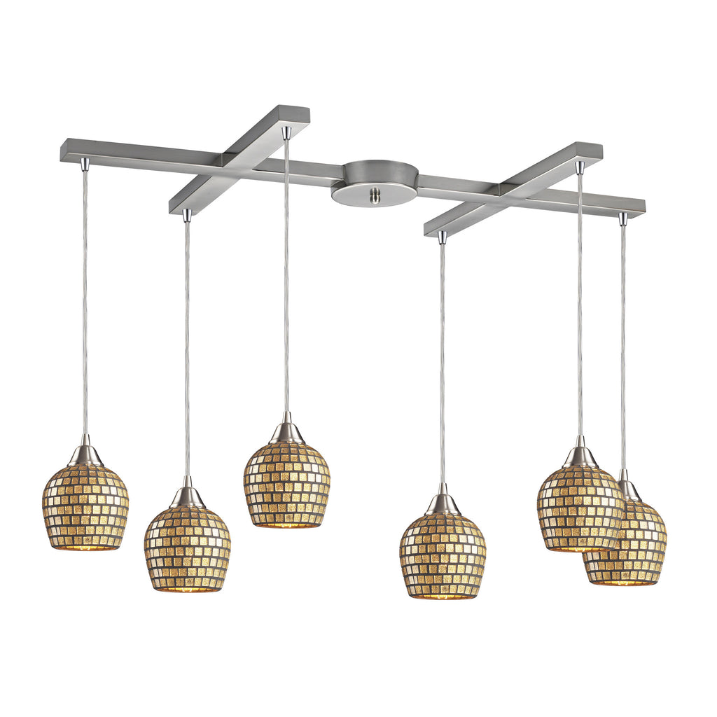 6 Light Pendant In Satin Nickel And Gold Mosaic Glass