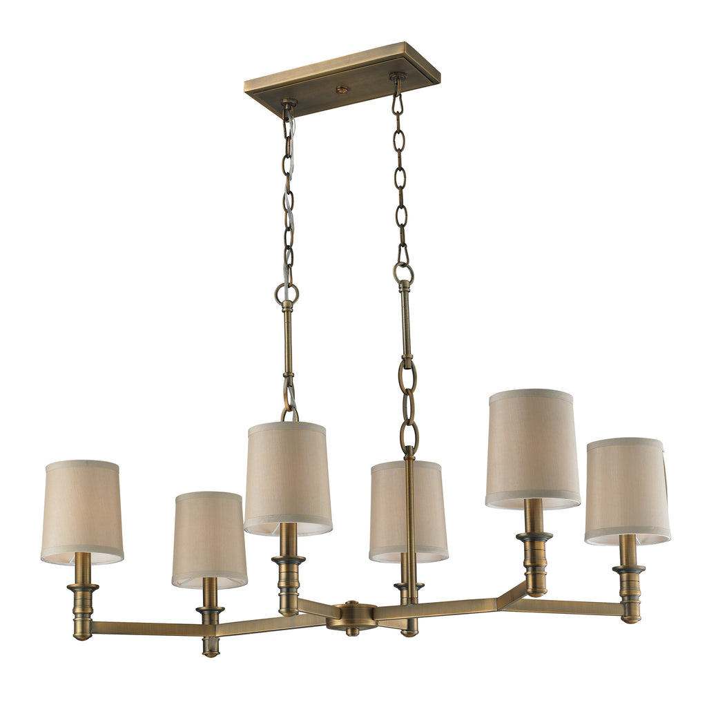 This Series Offers Subtle Sophistication Through Its Unique Frame Design And Quality Details Such As Turned Candle Holders And Decorative Oval Shaped Links. Beige Fabric Shades Combined With Brushed Antique Brass Finish Acknowledge The Collections Historic Attributes.Brand Information Brand:ELK Lighting Dimensions and Weight Dimensions:W:35 H:20 E:19 Weight: N/A Shipping Specifications...