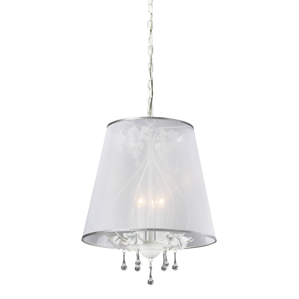 This Lovely Lantern Feattures A Flowing Shape With Floral Details And Clear Glass Drop. Finished In Antique White With Or Without A Silver Organza Shade.Brand Information