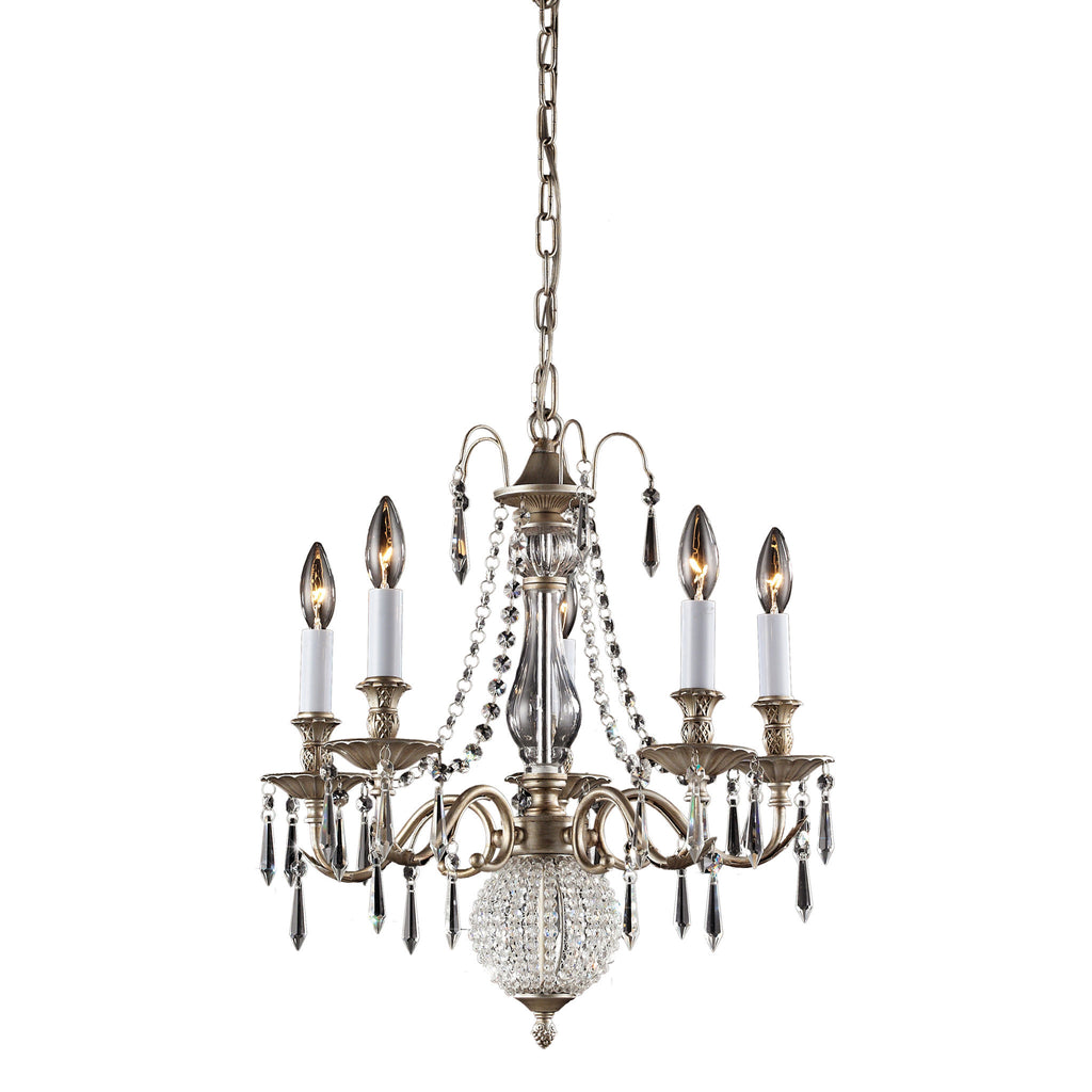 5 Light Crystal Pendant Lamp In Clear & Aged Silver Finish