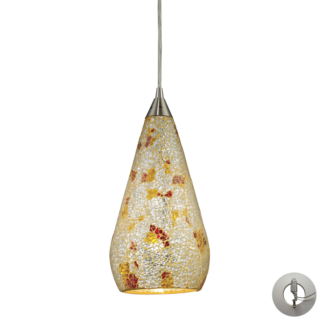 1 Light Pendant In Satin Nickel With Silver Multicolored Crackle Includes An Adapter Kit To Allow For Easy Conversion Of A Recessed Light To A Pendant