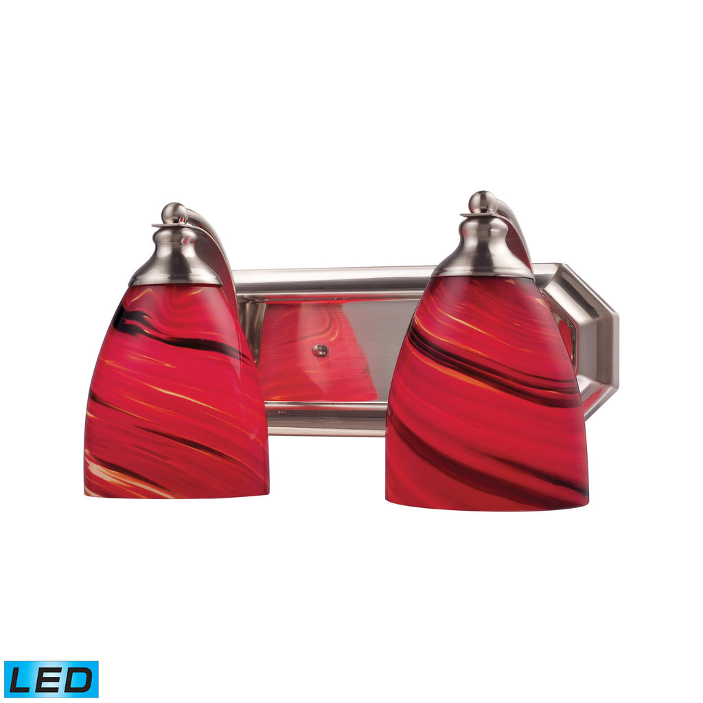2 Light Vanity In Satin Nickel And Autumn Glass - LED, 800 Lumens (1600 Lumens Total) With Full Scale Dimming Range, 60 Watt (120 Watt Total)Equivalent , 120V Replaceable LED Bulb Included