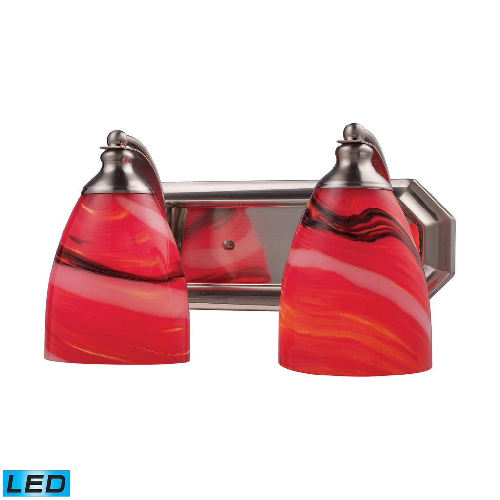 Vanity - LED, 800 Lumens (1600 Lumens Total) With Full Scale Dimming Range, 60 Watt (120 Watt Total)Equivalent , 120V Replaceable LED Bulb IncludedBrand Information Brand:ELK Lighting Dimensions and Weight Dimensions:W:14 H:7 E:8 Weight: N/A Shipping Specifications Ships Via: UPS Design Finish:Satin Nickel Bulb Type: LED 13.5 W 800 lumens...