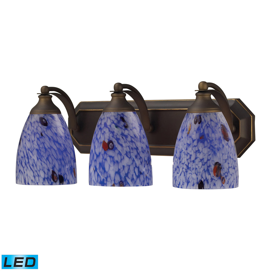3 Light Vanity In Aged Bronze And Starburst Blue Glass - LED, 800 Lumens (2400 Lumens Total) With Full Scale Dimming Range, 60 Watt (180 Watt Total)Equivalent , 120V Replaceable LED Bulb Included