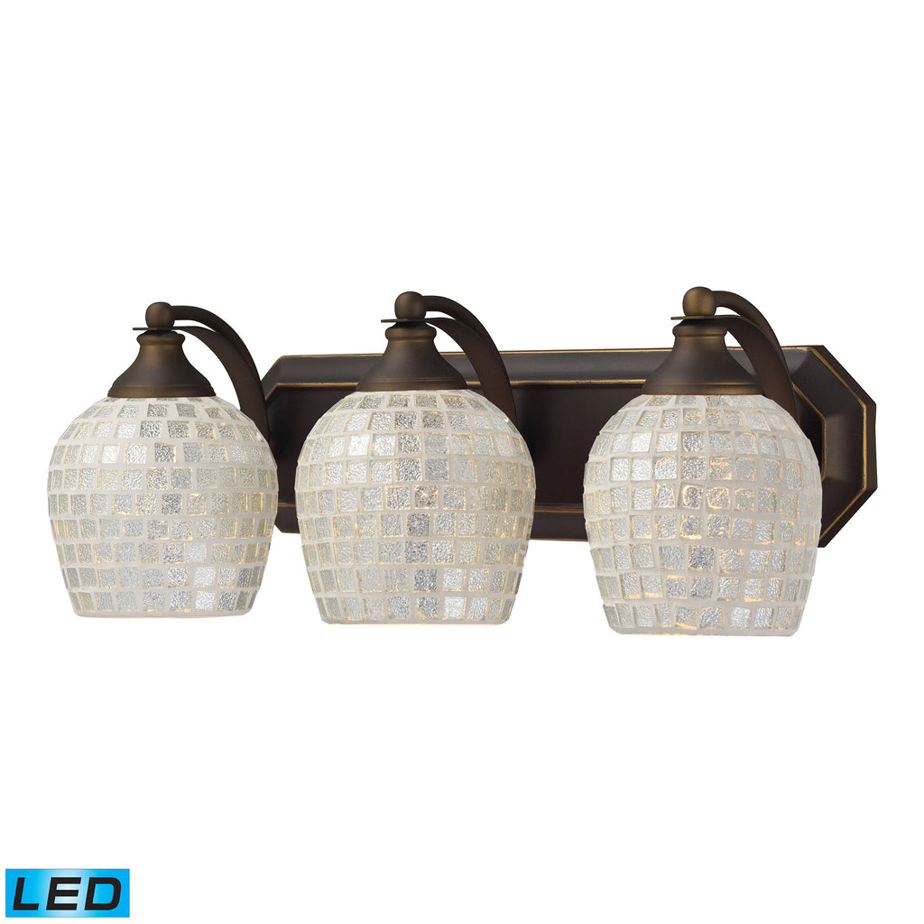 3 Light Vanity In Aged Bronze And Silver Mosaic Glass - LED, 800 Lumens (2400 Lumens Total) With Full Scale Dimming Range, 60 Watt (180 Watt Total)Equivalent , 120V Replaceable LED Bulb Included
