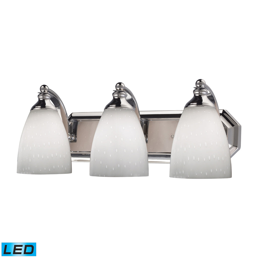 Vanity - LED, 800 Lumens (2400 Lumens Total) With Full Scale Dimming Range, 60 Watt (180 Watt Total)Equivalent , 120V Replaceable LED Bulb IncludedBrand Information Brand:ELK Lighting Dimensions and Weight Dimensions:W:20 H:7 E:8 Weight: N/A Shipping Specifications Ships Via: UPS Design Finish:Polished Chrome Bulb Type: LED 13.5 W 800 lumens...