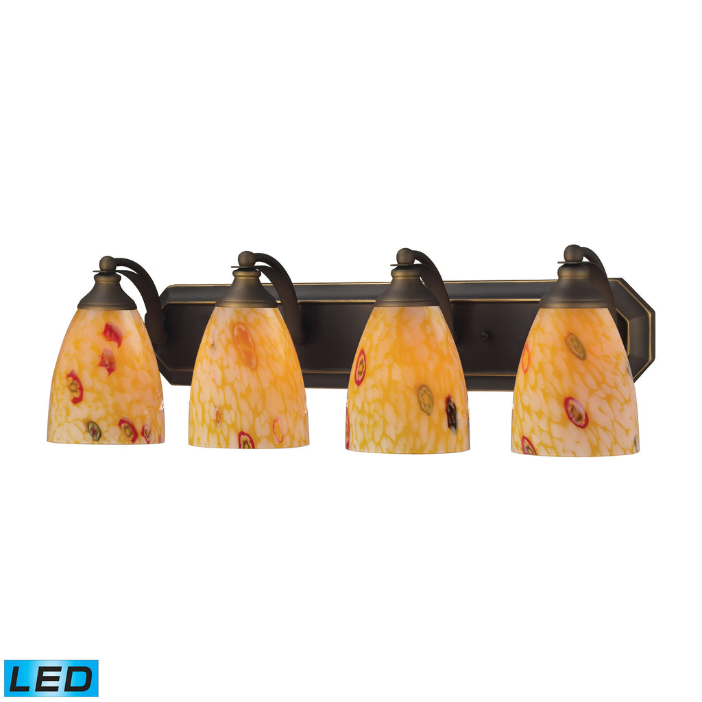 4 Light Vanity In Aged Bronze And Yellow Blaze Glass - LED, 800 Lumens (3200 Lumens Total) With Full Scale Dimming Range, 60 Watt (240 Watt Total)Equivalent , 120V Replaceable LED Bulb Included