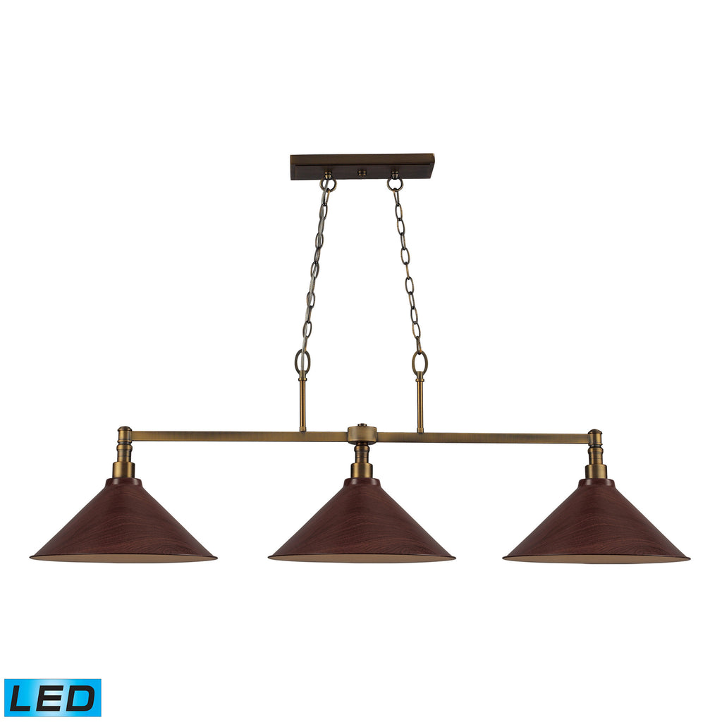 Baxter 3 Light Billiard In Dark Walnut And Brushed Antique Brass - LED, 800 Lumens (2400 Lumens Total) With Full Scale Dimming Range, 60 Watt (180 Watt Total)Equivalent , 120V Replaceable LED Bulb Included