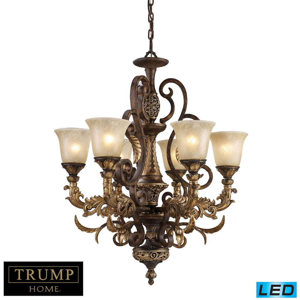 Inspired By The Scrolling Design Of The Trump Family Crest, Regency Creates A Rich And Regal Ambiance. The Solid Cast Iron Scrolls And Burnt Bronze Finish Compliments The Delicate Weathered Gold Leaf Accents And Caramel Amber Glass To Create A Dramatic And Stunning Collection. - LED, 800 Lumens (4800 Lumens...