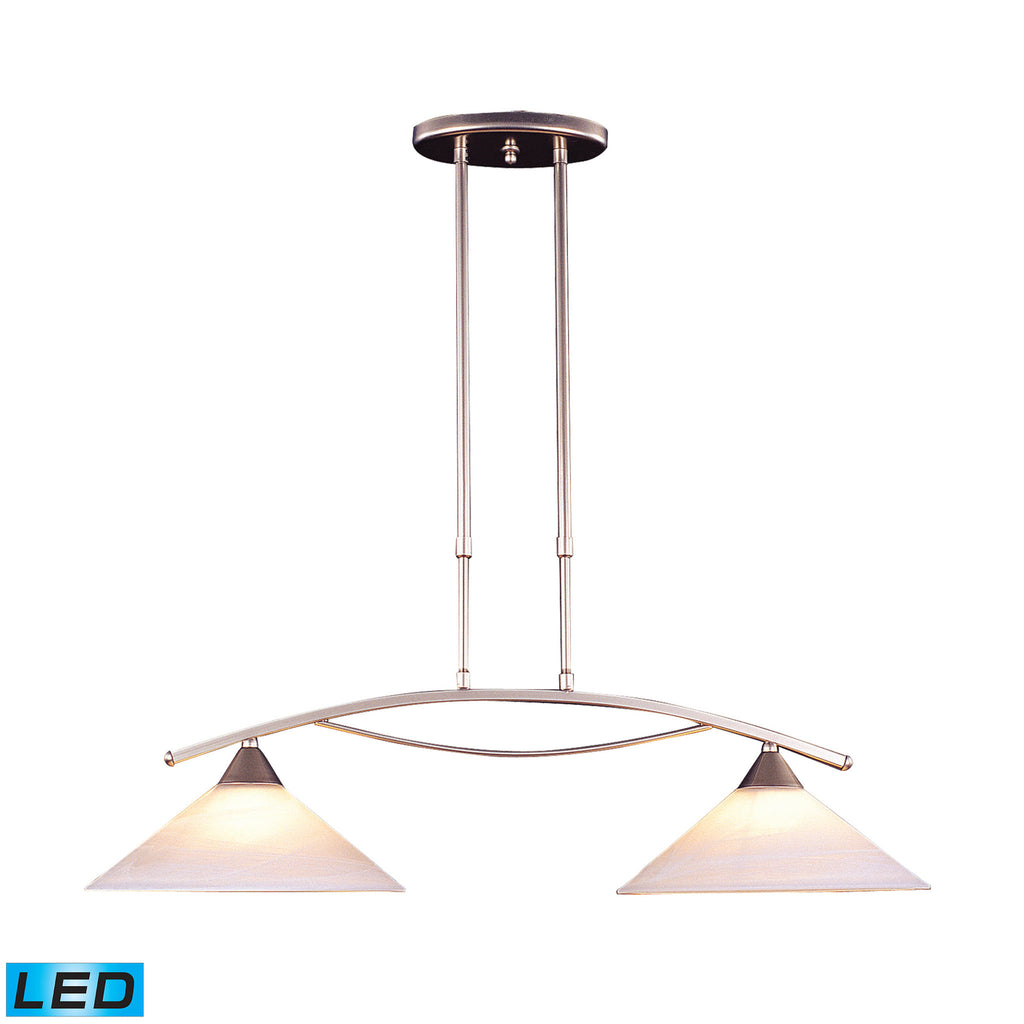 2 Light Island Light In Satin Nickel And Tea Swirl Glass - LED, 800 Lumens (1600 Lumens Total) With Full Scale Dimming Range, 60 Watt (120 Watt Total)Equivalent , 120V Replaceable LED Bulb Included