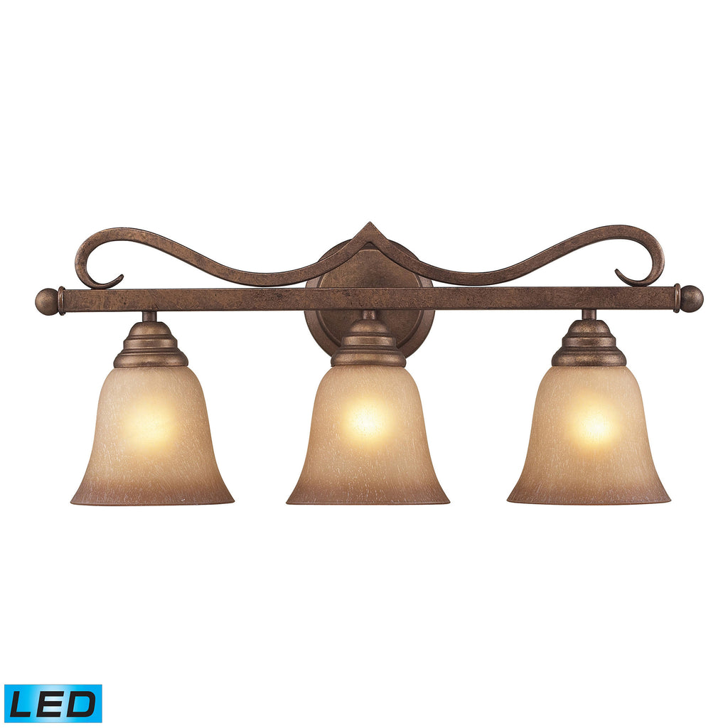 3 Light Vanity In Mocha And Antique Amber Glass - LED, 800 Lumens (2400 Lumens Total) With Full Scale Dimming Range, 60 Watt (180 Watt Total)Equivalent , 120V Replaceable LED Bulb Included