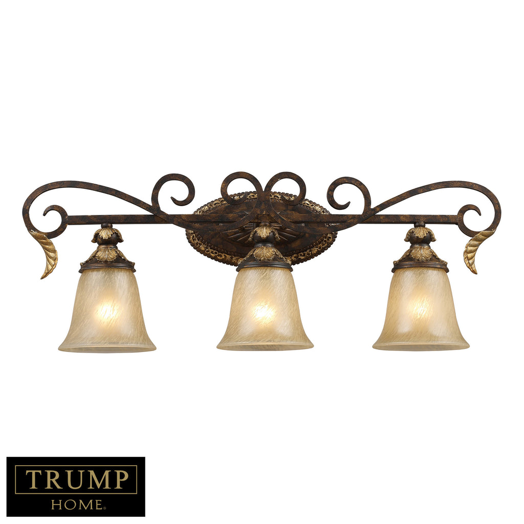 Inspired By The Scrolling Design Of The Trump Family Crest, Regency Creates A Rich And Regal Ambiance. The Solid Cast Iron Scrolls And Burnt Bronze Finish Compliments The Delicate Weathered Gold Leaf Accents And Caramel Amber Glass To Create A Dramatic And Stunning Collection.Brand Information Brand:ELK Lighting Dimensions and Weight...