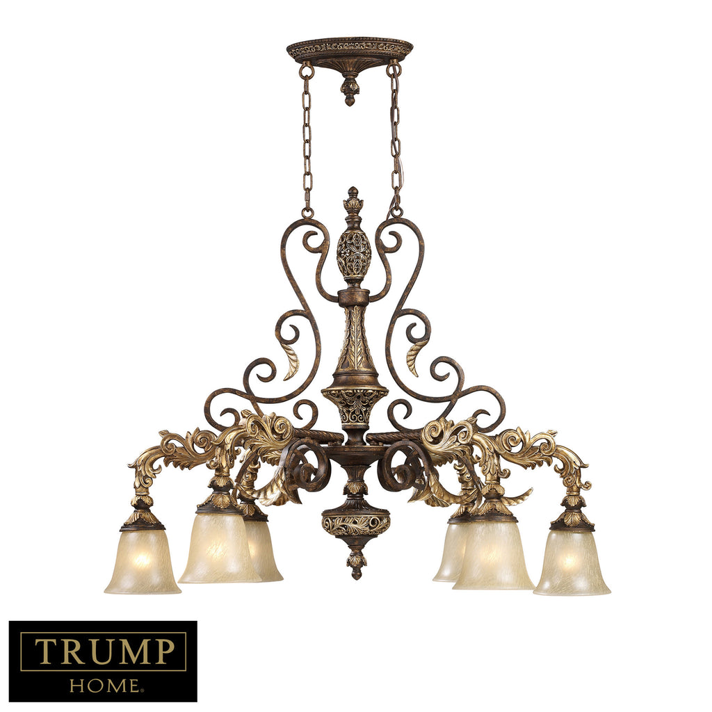 Inspired By The Scrolling Design Of The Trump Family Crest, Regency Creates A Rich And Regal Ambiance. The Solid Cast Iron Scrolls And Burnt Bronze Finish Compliments The Delicate Weathered Gold Leaf Accents And Caramel Amber Glass To Create A Dramatic And Stunning Collection.Brand Information Brand:ELK Lighting Dimensions and Weight...
