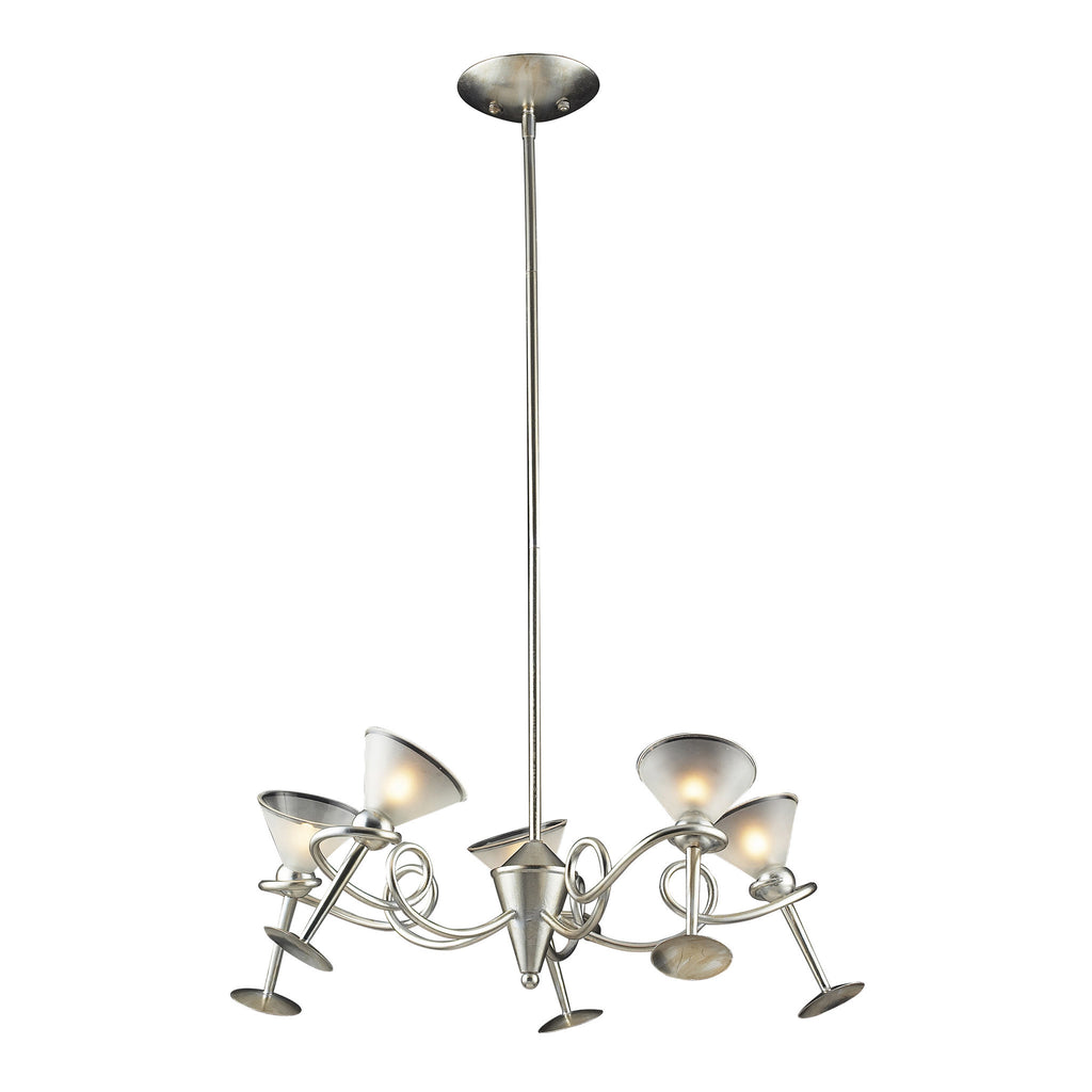 5 Light Chandelier In Silver Leaf And Frosted Martini Glass