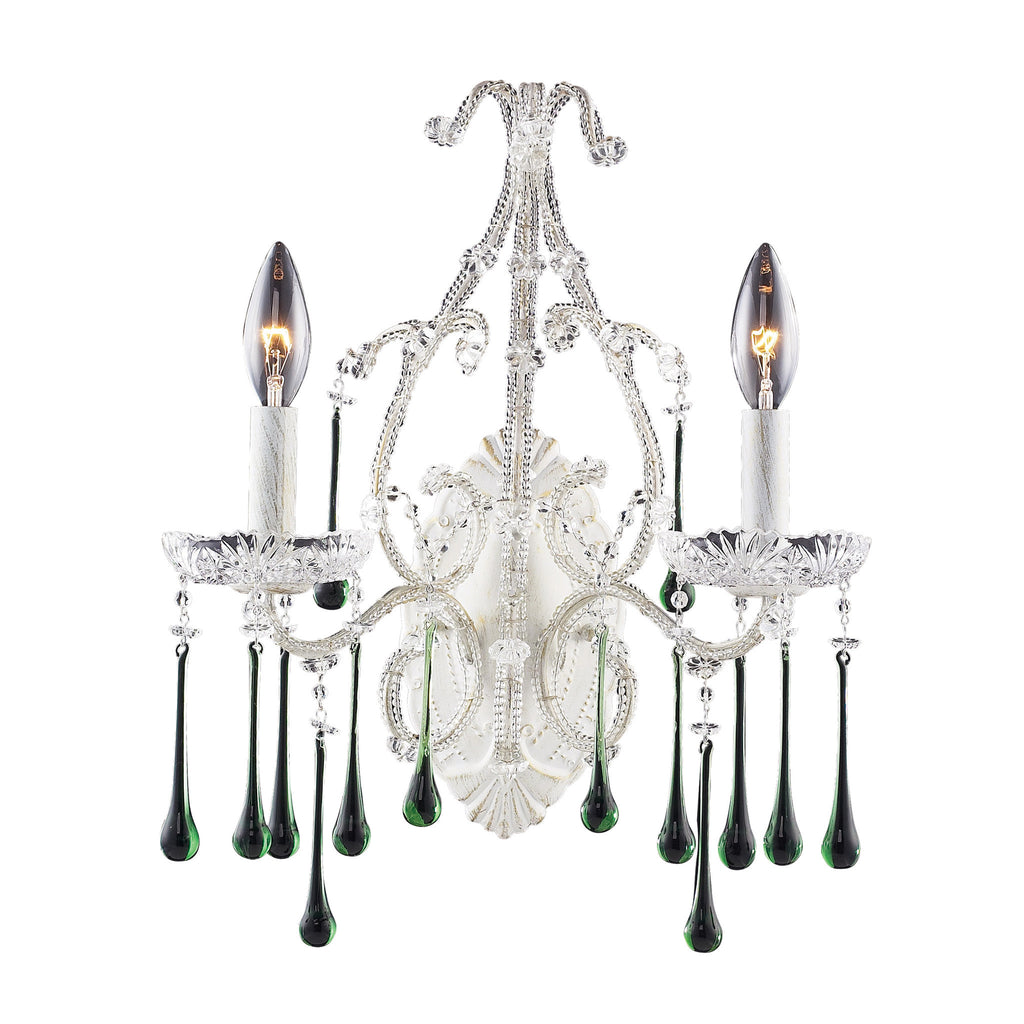 2 Light Wall Bracket In Antique White And Lime Crystal