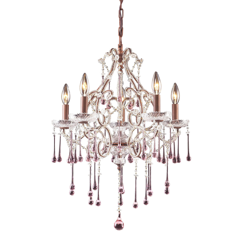5 Light Chandelier In Rust And Rose Crystal