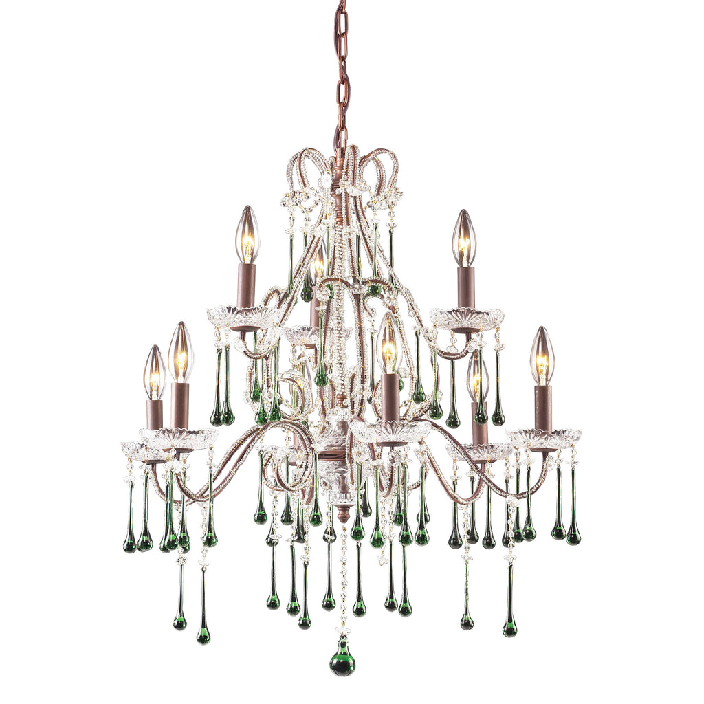 9 Light Chandelier In Rust And Lime Crystal