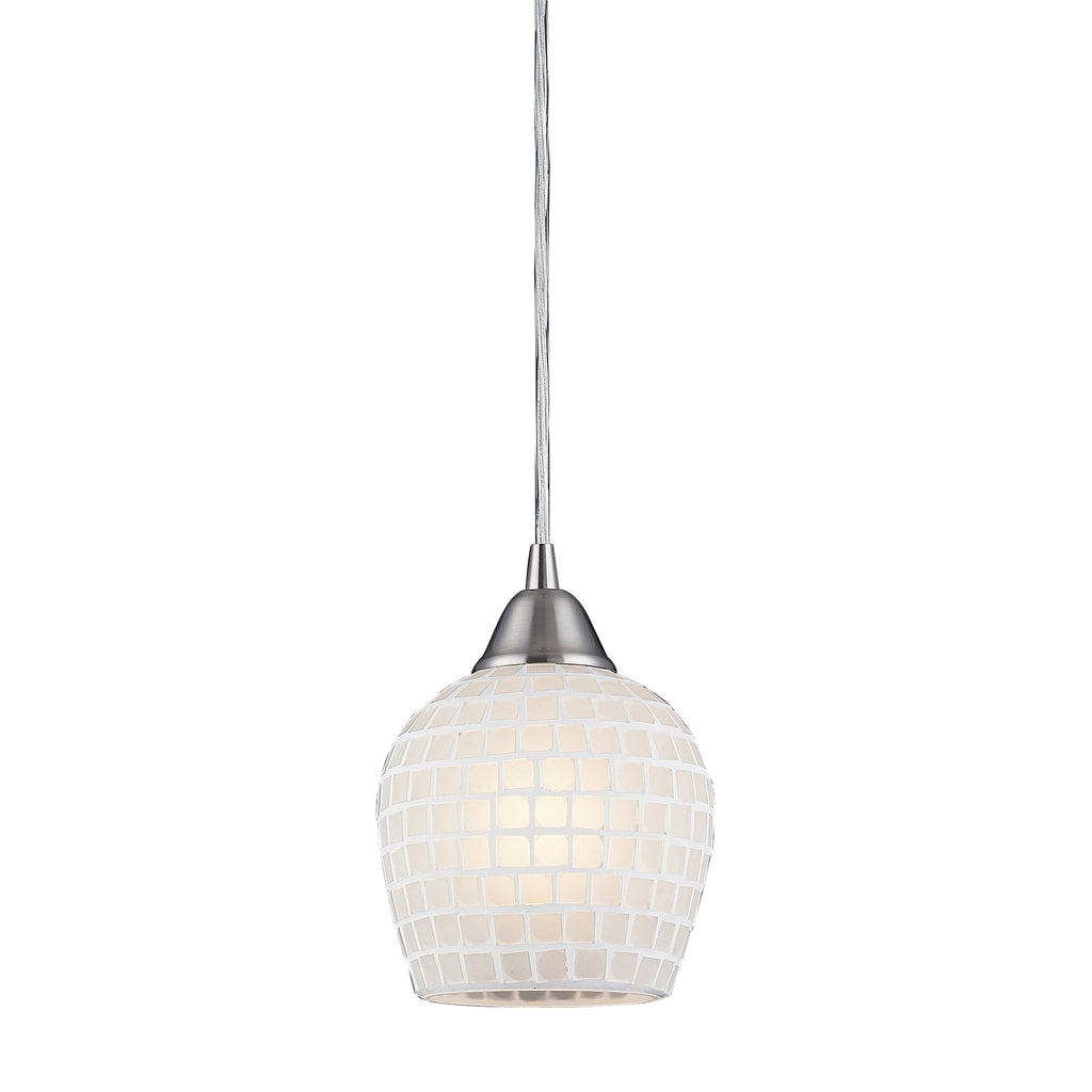 1 Light Pendant In Satin Nickel And White Mosaic Glass