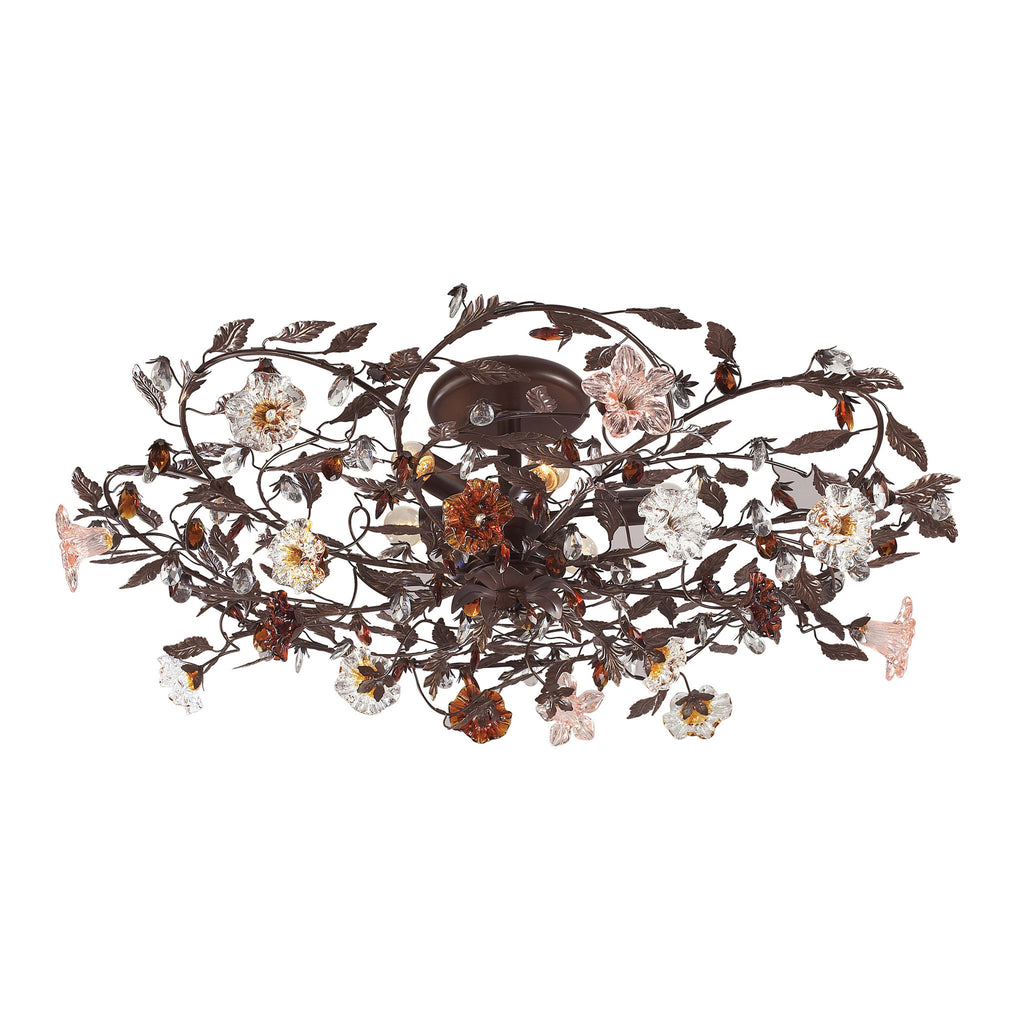 6 Light Semi Flush In Deep Rust And Hand Blown Florets