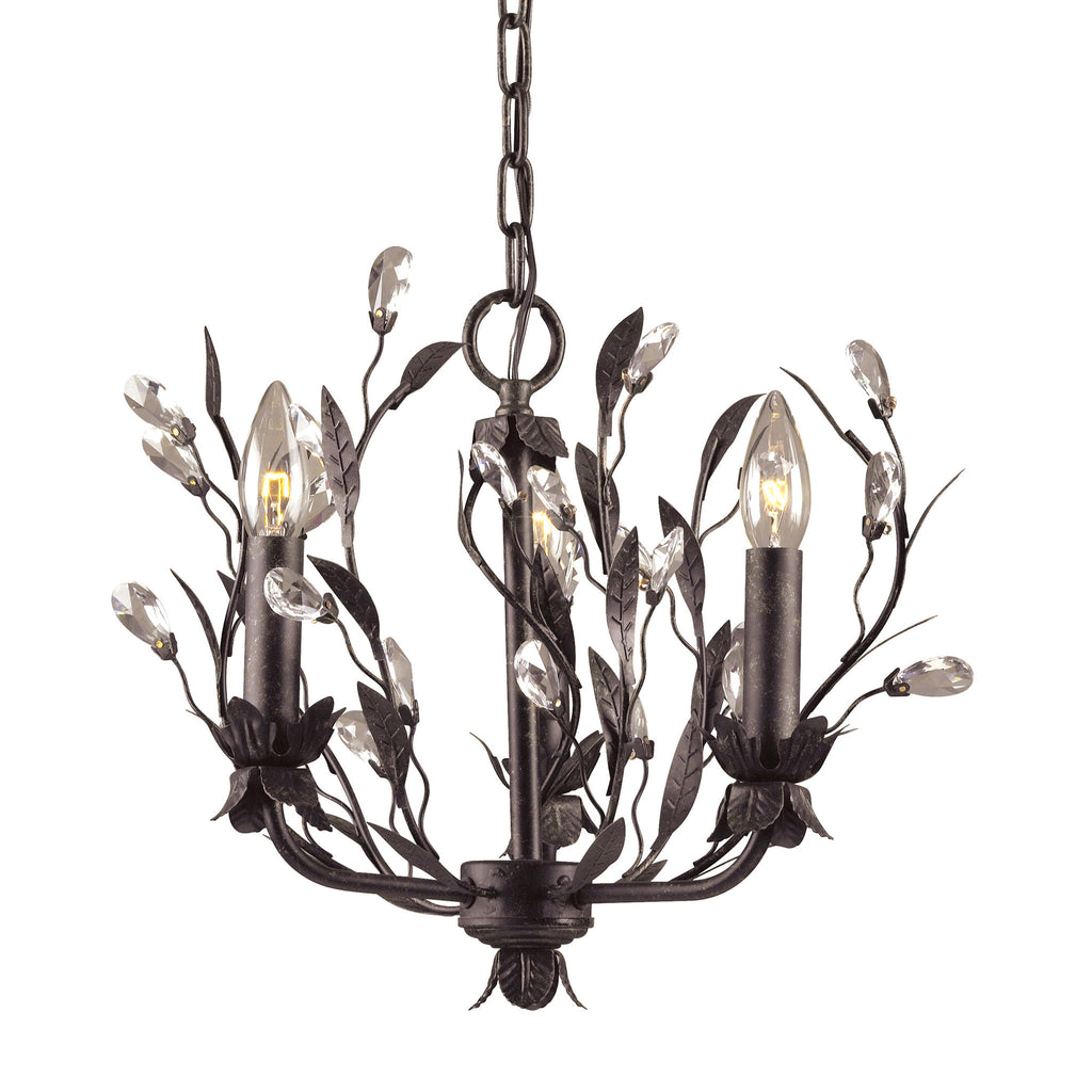 3 Light Chandelier In Deep Rust And Crystal Droplets