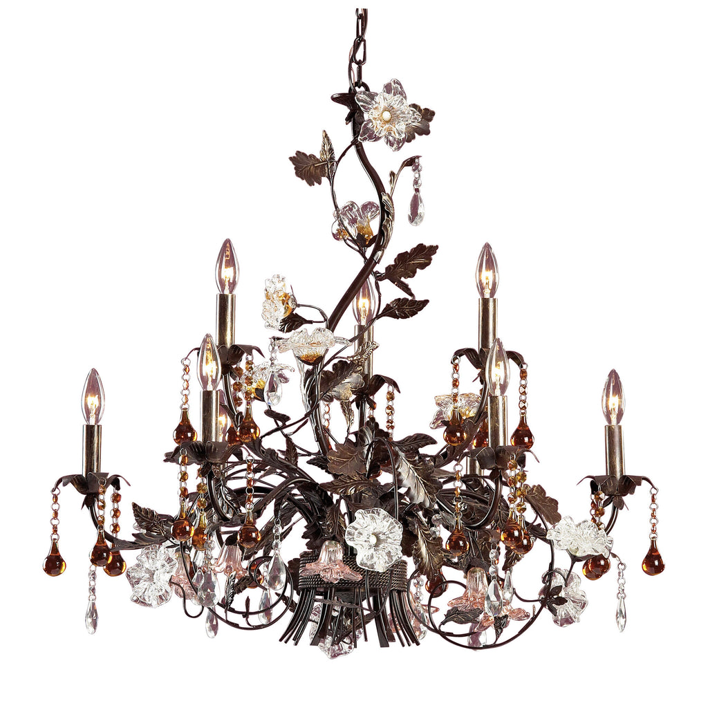 9 Light Chandelier In Deep Rust And Hand Blown Florets