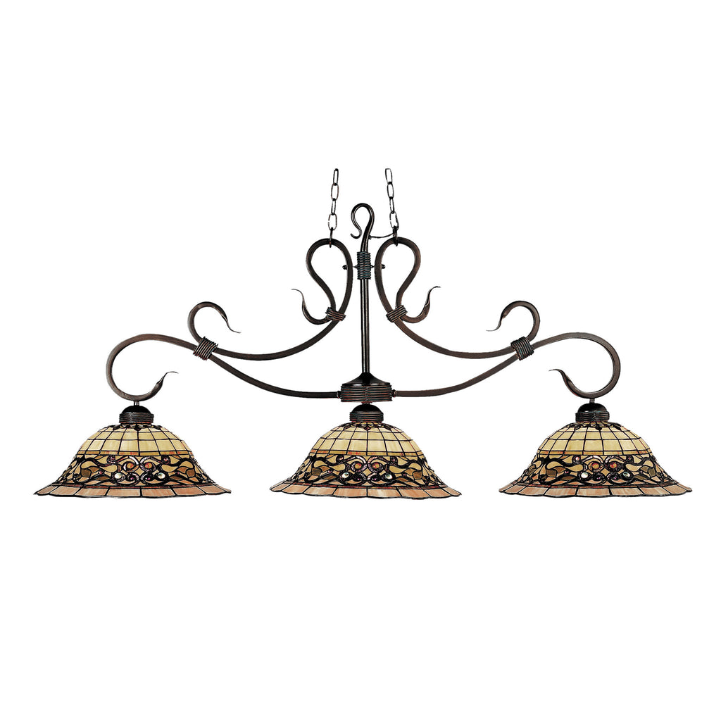 Tiffany Buckingham 3-Light Billiard/Island In Vintage Antique With Tiffany Style Glass