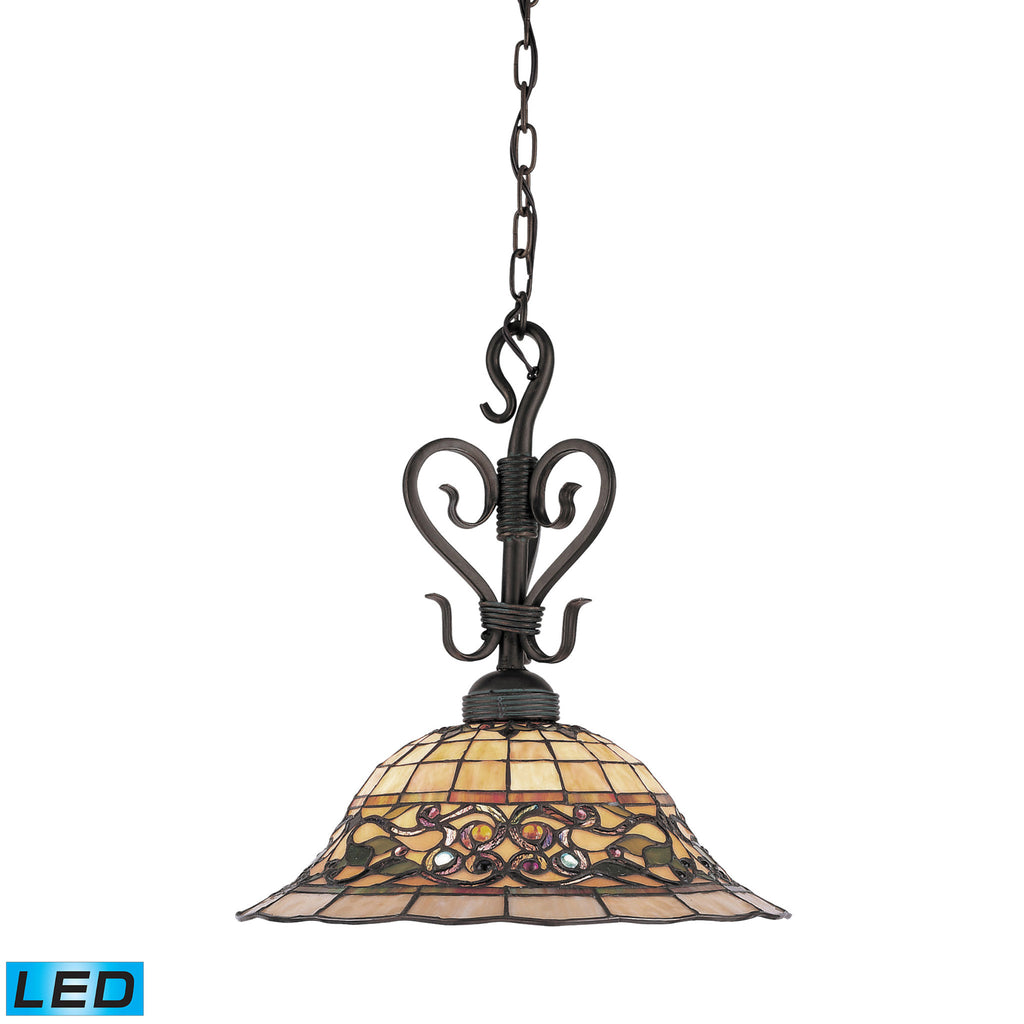 Tiffany Buckingham 1-Light Pendant In Vintage Antique With Tiffany Style Glass - LED Offering Up To 800 Lumens (60 Watt Equivalent) With Full Range Dimming. Includes An Easily Replaceable LED Bulb (120V).