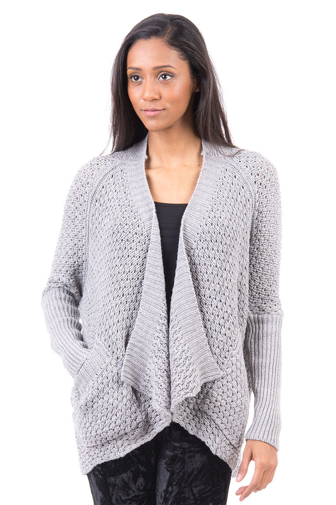 Waterfall Front Loose Knit Baggy Cardigan with Pockets-Grey-XLarge - UK (14-16)